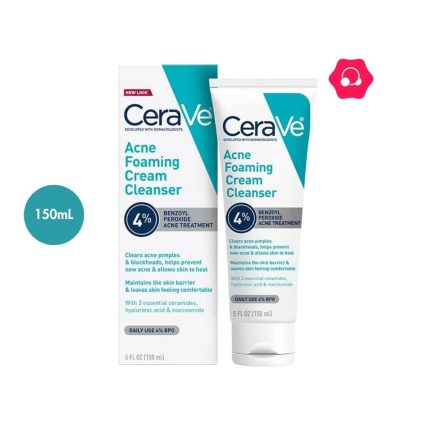 CeraVe Acne Foaming Cream Cleanser with 4% Benzoyl Peroxide Acne Treatment (150mL)