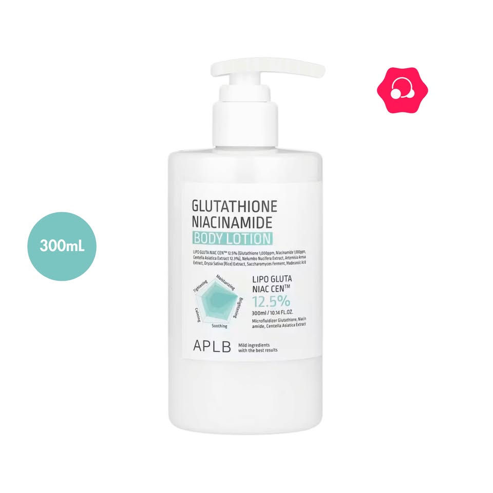 Elevate your body care routine with the APLB Glutathione Niacinamide Body Lotion (300mL), a luxurious accessory designed to nurture and enhance your skin’s overall appearance. This lightweight yet deeply hydrating formula glides onto the skin, providing essential moisture and promoting a smoother texture. It is a perfect daily solution for maintaining skin health and softness across the entire body.