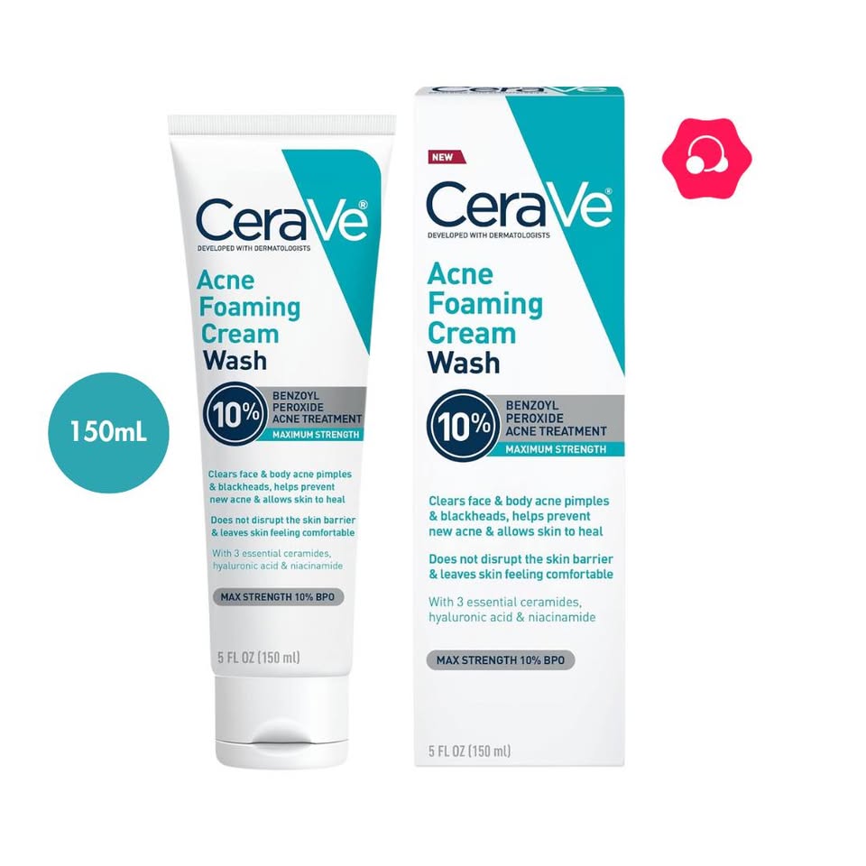 CeraVe Acne Foaming Cream Wash with 10% Benzoyl Peroxide Acne Treatment (150mL)