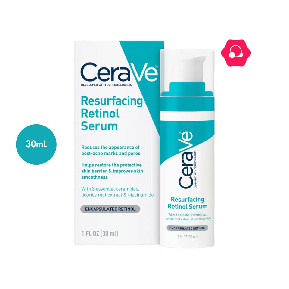 CeraVe Resurfacing Retinol Serum for Acne Prone Skin with ceramides helps reduce the appearance of post-acne marks and visible pores while refining the skin’s surface. Benefits Formulated with encapsulated retinol to refine skin texture and improve smoothness Helps skin look brighter, smoother and more even-toned Reduces the appearance of post-acne marks and visible pores Helps restore the skin’s protective barrier with ceramides Provides soothing benefits with niacinamide Lightweight and fast-absorbing Non-comedogenic Developed with dermatologists Key Ingredients Encapsulated retinol helps resurface skin texture and minimize the look of visible pores Licorice root extract is known to help brighten the appearance of skin Ceramides help restore and maintain the skin’s natural barrier Niacinamide helps calm the skin MVE Technology, a patented delivery system, continually releases moisturizing ingredients Formulated Without Fragrance Parabens How to Use Apply evenly to face daily. Avoid contact with eyes& lips. If contact occurs, rinse thoroughly with water. If discomfort occurs during the first application, space out the applications until skin adjusts. Apply a sunscreen while using the product. Ingredients: Aqua/Water, Propanediol, Dimethicone, Cetearyl Ethylhexanoate, Niacinamide, Ammonium Polyacryloyldimethyl Taurate, Dipotassium Glycyrrhizate, Hydrogenated Lecithin, Potassium Phosphate, Ceramide Np, Ceramide Ap, Ceramide Eop, Carbomer, Cetearyl Alcohol, Behentrimonium Methosulfate, Dimethiconol, Lecithin, Sodium Citrate, Retinol, Sodium Hyaluronate, Sodium Lauroyl Lactylate, Cholesterol, Phenoxyethanol, Alcohol, Isopropyl Myristate, Caprylyl Glycol, Citric Acid, Trisodium Ethylenediamine Disuccinate, Pentylene Glycol, Phytosphingosine, Xanthan Gum, Polysorbate 20, Ethylhexylglycerin.