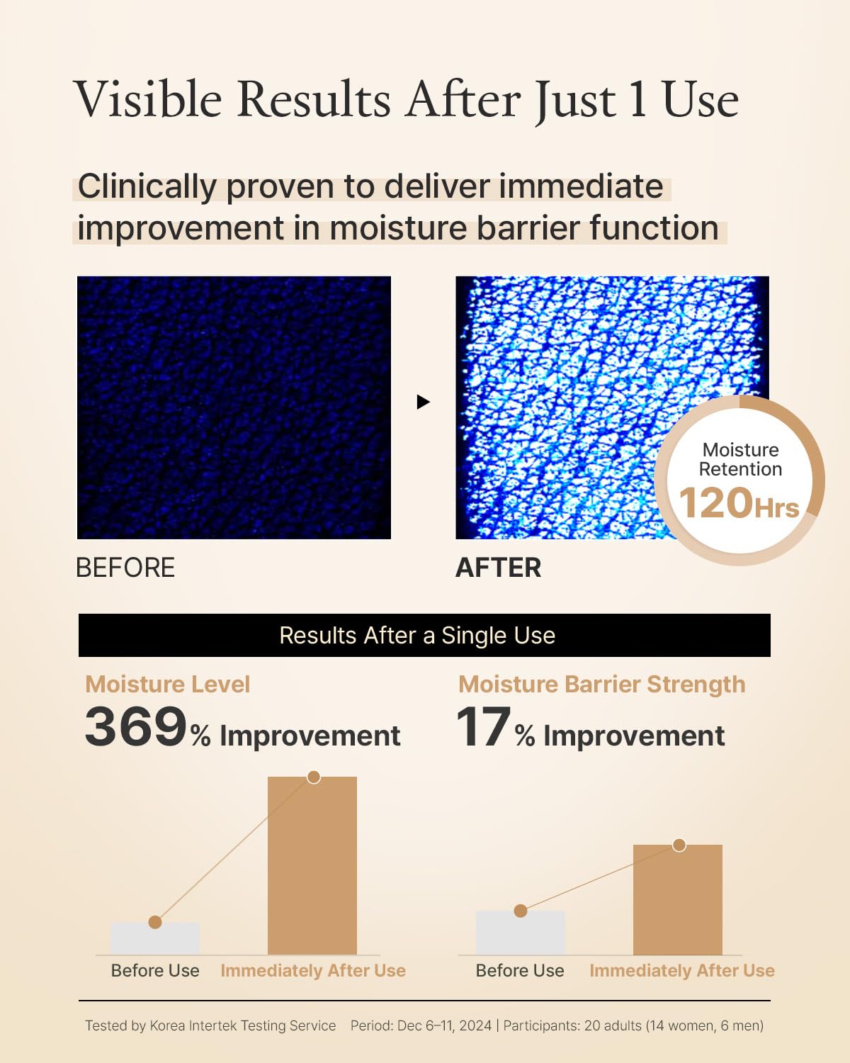 Can be improved with just one use, helps improve skin barrier moisturizing, and shows skin barrier improvement and moisturizing persistence for 120 hours.